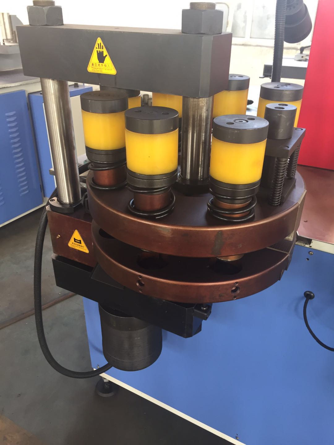 1.沖孔單元具有轉(zhuǎn)塔式模具庫,最多可存放八套(沖孔或壓花)模具或七套沖孔模具加一套壓花模具; 2.剪切單元采用圓形整體結(jié)構(gòu),其設(shè)計(jì)新穎獨(dú)特,受力合理,能有效保證長期使用不變形; 3.折彎單元采用整體結(jié)構(gòu),角度數(shù)控方式,簡單操作,精度高; 4.本機(jī)采用雙層工作臺設(shè)計(jì)方案,真正做到三工位同時工作,互不影響; 5.本機(jī)配帶自動加、放油系統(tǒng),操作簡單方便,液壓油通過過濾器后進(jìn)入油箱,能保證整個液壓系統(tǒng)不受污染; 6.本機(jī)采用不銹鋼油箱,能確保液壓油無腐蝕性變質(zhì),延長液壓油及各密封件的使用壽命; 7.抽換模具,異常方便; 8.PLC控制,穩(wěn)定可靠。